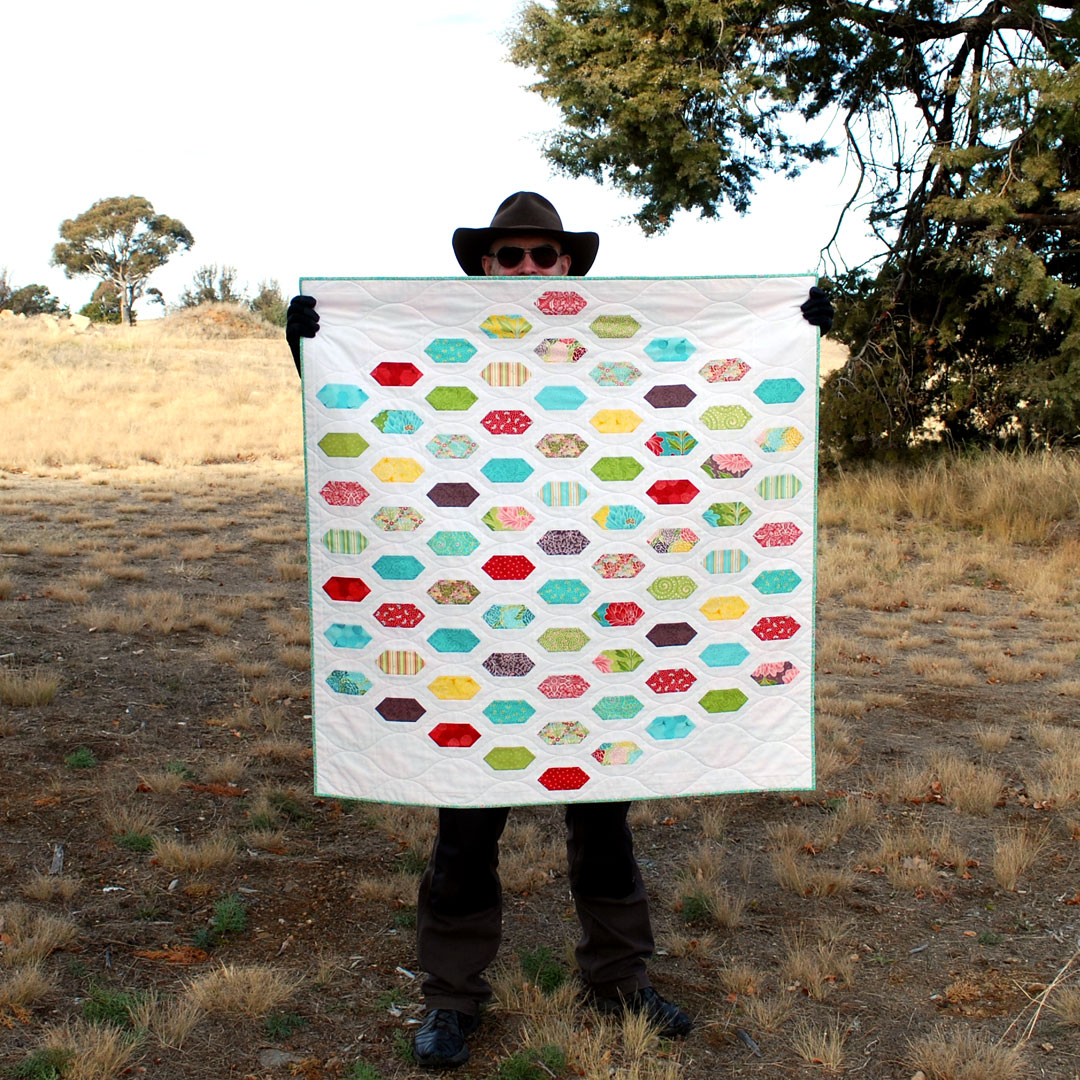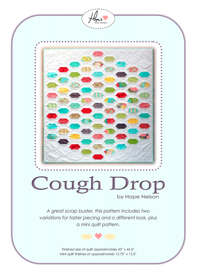 Cough Drop is a hexagon quilt with a difference! Named for the lozenge shapes that make up the quilt design, Cough Drop is a great quilt for scraps, pre-cut 5" squares or charm packs, or the left-over ends of pre-cut 2.5" strips - as well as yardage of course!